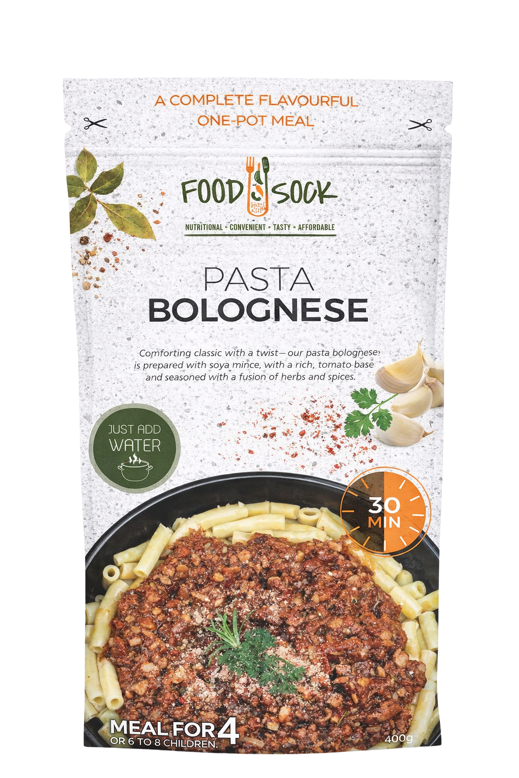 Each sock makes a hearty, nutritious meal for four. No wasted ingredients, no last-minute takeaway runs. Cooked leftovers can be frozen and enjoyed on another day.